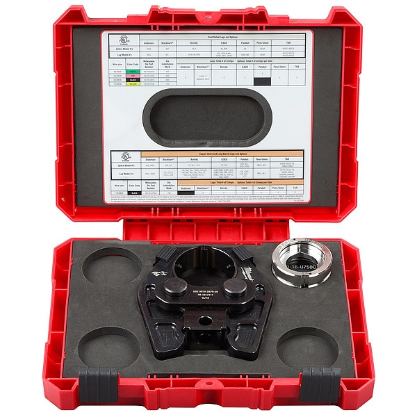 Crimping Jaw, Product Type Crimping Jaw and Die Set, Compatible Mfr. Model No. 2679-20, Maximum Copper Lug Crimping Capacity 750 kcmil, Maximum Aluminum Lug Crimping Capacity 750 kcmil, Head Style No Head Included, Compatible Die Type U-Die, Compatible with Brand Milwaukee, Compatible with Manufacturer Model Number 2679-22, Connector Color Code Black, Crimping Capacity 750 kcmil, Includes 750 MCM Copper 6T U Style Die, Crimping Jaw, Maximum Crimping Force 6 ton