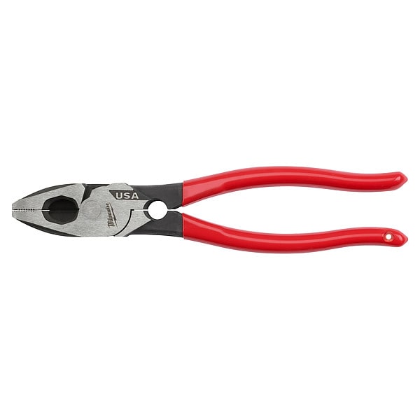 Dipped Grip Plier, Insulated No, Includes Voltage Detection Module No, Tether Ready Yes, Plier Type Lineman's Pliers, Overall Length 9 in, Jaw Shape Flat, Jaw Length 1 7/8 in, Jaw Width 1 1/4 in, Jaw Thickness 5/8 in, Handle Style Dipped Grip, Additional Tool Functions Fish Tape Puller, Thread Cleaner, Non-Sparking No, ESD-Safe No, Voltage Rating Not Rated, High Leverage Yes, Blade Material Steel, Connectors Crimped Not Applicable, Cutter Length 3/4 in, Cutting Capacities Not Applicable