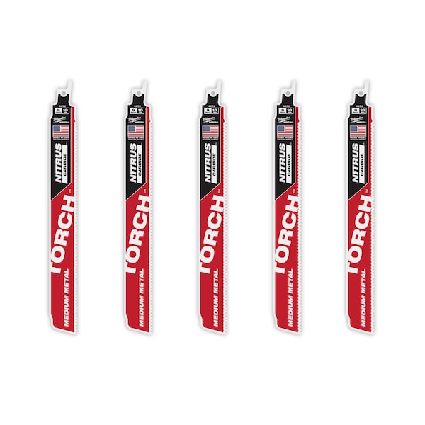 The MILWAUKEE® TORCHTM with NITRUS CARBIDETM for Conduit, Strut, and other medium-thickness metals delivers the fastest cutting, and longest life with a breakthrough Carbide Technology. These NITRUS CARBIDETM reciprocating saw blades are engineered to dissipate heat better than any other demolition blade for faster cutting. The TORCHTM with NITRUS CARBIDETM for Medium metals delivers 2x life versus carbide teeth blades in rigid metal conduit. This 10TPI SAWZALL® blade is ideal for smooth, fast cuts and enhanced durability in conduit, strut, angle iron, and Stainless Steel.