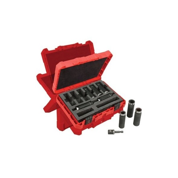 9-Pc. Thin Wall Deep Impact Socket Set W/1/4 in. Hex To 1/2 in. Square Adapter & Plastic Case