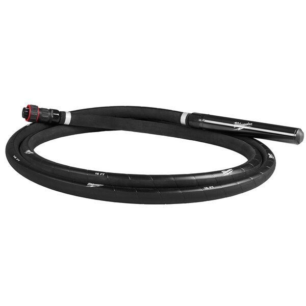 Vibrator Whip, Product Type Vibrator Whip with Head, Compatible Brand Milwaukee, Compatible Motor Manufacturer Part Number MXF372-2XC, MXF372-2XCB, Overall Length 16 ft, Overall Width 2 1/4 in, Motor Connection Type Quick-Connect, Head Material Steel, Head Diameter 2 1/4 in, Maximum Distance Not Applicable, Tool Weight 22.3 lb, Compatible Product Type Concrete Vibrator, Includes Head