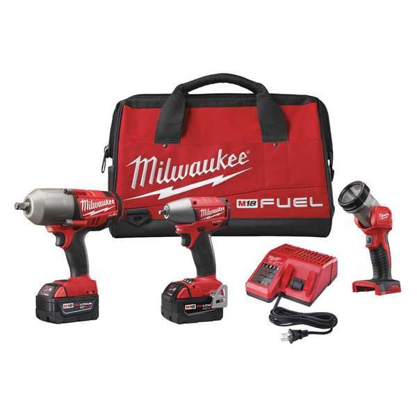 Cordless Combination Kit, Cordless Tools Included Impact Wrench, Light, Voltage 18.0, Number of Tools 3, Battery Capacity 5.0Ah, Series M18 FUEL, Battery Included (2) 35GJ99, Charger 23Y581