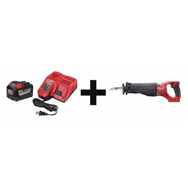 Reciprocating Saw Kit, Series M18 FUEL(TM), Tool Length 17 3/4 in, Tool Weight 7.4 lb, Voltage 18.0, Battery Capacity 9.0Ah, Includes Battery, Charger, Blade, Features Quik-lok(TM), LED Light, Hang Hook, Patented Gear Protecting Clutch, Battery Fuel Gauge, All-Weather Performance, Variable Speed Trigger, Blade Type 1/2 in Universal Tang, Handle Type Soft Grip