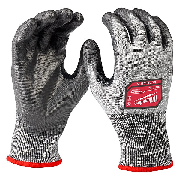 The MILWAUKEE High-Dexterity ANSI/ISEA 105-2016 Cut Level 5 Polyurethane Dipped Gloves allow users to maintain high dexterity while also providing a better fit. These cut-resistant gloves are made of an 18 gauge knit for total mobility. The gloves also have a reinforced nitrile coating between the thumb and index finger for enhanced durability in high wear points. The polyurethane dip makes the glove feel lighter and more breathable while working. MILWAUKEE SMARTSWIPE fingertips provide you with full access to your touchscreen devices without removing the gloves. MILWAUKEE High-Dexterity Gloves feature a color-coded wristband for easy cut-level identification.