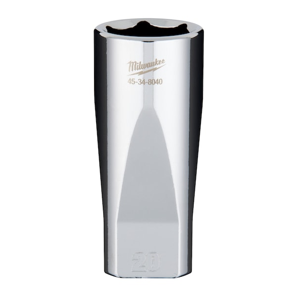The MILWAUKEE® 3/8" Drive 20MM Metric 6-Point Deep Well Socket with FOUR FLATTM Sides was designed from the ground up to be part of the most versatile socket family. The 3/8" drive sockets feature an innovative design with four parallel flat sides, which deter rolling and are wrench-compatible. The metric socket sizes are stamped into the flats providing improved, easy-to-read visibility. This deep well socket has been optimized geometry to reduce bolt rounding and stripping. Milwaukee backs their 3/8" Drive Metric Sockets with a lifetime guarantee.