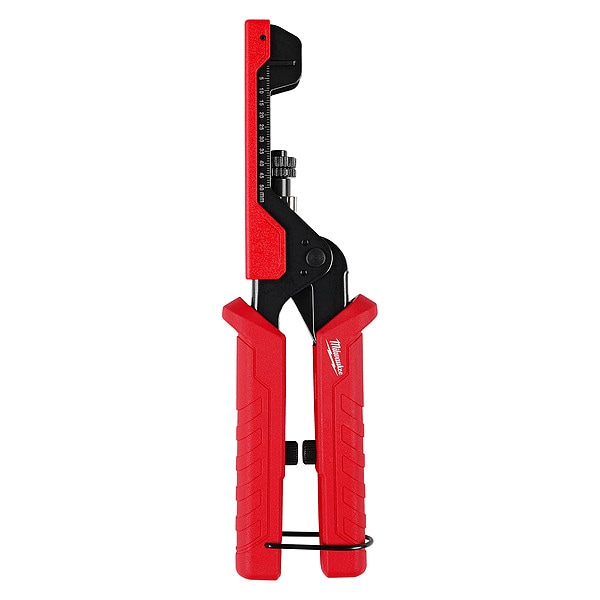 The MILWAUKEE® Extended Reach Compression Coax Crimper has an open-head design to provide easy access while working in tight or hard-to-reach spaces and short cable runs. Install F, BNC, and RCA compression connectors with the adjustable universal plunger. With an on-tool connector and millimeter markings, this versatile tool allows you to easily transition between connector styles while delivering consistent crimps. Ergonomic grip handles reduce hand strain and allow users to crimp comfortably.