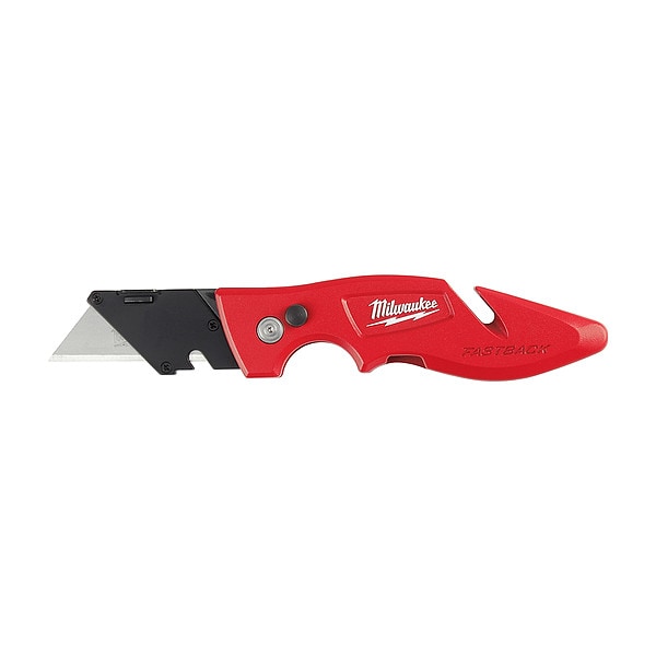 The Milwaukee FASTBACK Folding Utility Knife features Press and Flip for one-handed opening. The MILWAUKEE utility knife allows you to make quick, tool-free blade changes for maximum jobsite efficiency The utility knife has an all metal body, an integrated gut hook and wire stripper for increased versatility. The folding utility knife has a metal extension that prevents accidental blade removal and a wire belt clip.