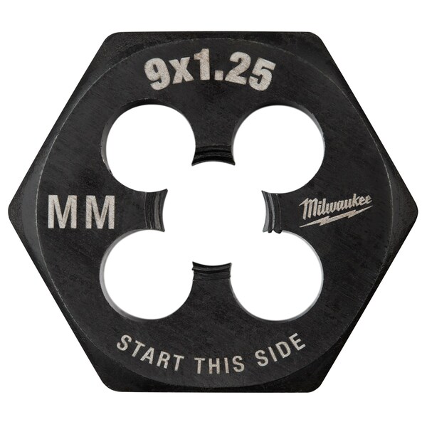 Hex Threading Die, Thread Size M9 x 1.25 mm, Metric, Solid, Outside Dia. 1 1/8 in, Die Material High Carbon Steel, Finish - Machining Black Oxide, Thread Type Metric, Thread Pitch 1.25 mm, Thread Direction Right Hand, Die Thickness 1/2 in, Die Shape Hex, Hex Size 1 in