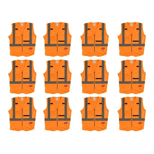 High Visibility Vest, ANSI Class 2, Vest Size L, XL, Traffic Safety Vest Color Orange/Red, Fits Chest Size 42 in to 46 in, Gender Men's, Stripe Color Silver, Vest Material Polyester, Vest Closure Type Zipper, ATPV Rating Not Rated, Hazard Risk Category (HRC) Not Applicable, Vest Stripe Color Family Silver, Back Stripe Pattern U, Vest Length 27-1/2 in, Number of Pockets (Inside) 1, Number of Pockets (Outside) 9, Number of Pockets with Closure 2, Features ID Window, Quick Internal Size Adjustment