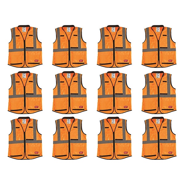 High Visibility Vest, ANSI Class 2, Vest Size M, S, Traffic Safety Vest Color Orange/Red, Fits Chest Size 38 in to 42 in, Gender Men's, Stripe Color Silver, Vest Material Polyester, Vest Closure Type Zipper, ATPV Rating Not Rated, Hazard Risk Category (HRC) Not Applicable, Vest Stripe Color Family Silver, Back Stripe Pattern X, Vest Length 25-1/2 in, Number of Pockets (Inside) 3, Number of Pockets (Outside) 12, Number of Pockets with Closure 6, Features ID Window, Quick Internal Size Adjustment