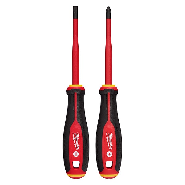 Insulated Screwdriver Set, #2, 1/4 in, Cabinet, Phillips, Square, Cushion, Number of Pieces 2, Yes, ESD Safe No, Non-Sparking No, Measurement Type SAE, ASTM F1505, IEC 60900, UL