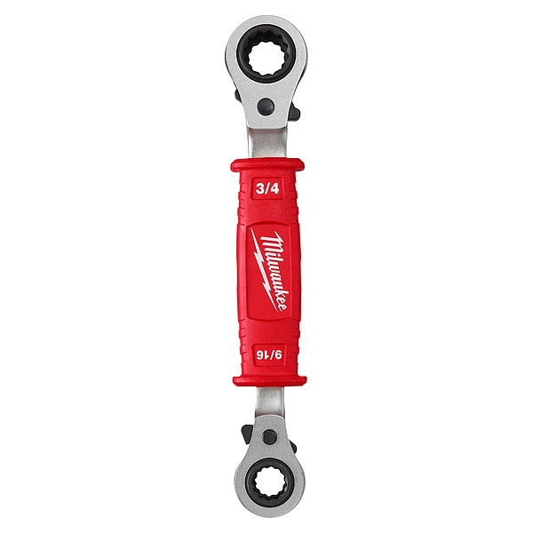 Lineman's 4-in-1 Ratcheting Insulated Box Wrench is 1000V UL Classified. Durable forged steel construction gives your tool a longer life. The ratcheting wrench's ergonomic handle is designed to provide you with comfortable use while wearing gloves and still allows for easy storage. High contrast size markings let you identify size easier. The box wrench features twelve point sockets that fit 1/2", 9/16", 5/8", and 3/4" hardware.