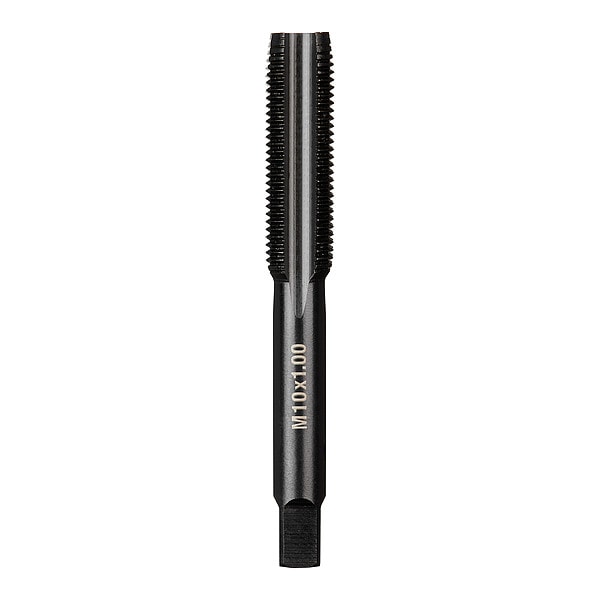 Straight Flute Plug Tap, Thread Size M10 x 1.00 mm, Metric, Plug, Overall Length 3.0000 in, Carbon Steel, Black Oxide, Right Hand, Thread Length 31.75 mm, 75 Percent Thread Drill Size Not Applicable, Thread Limit Not Applicable, Class of Fit 2A