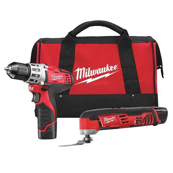 Cordless Combination Kit, Cordless Tools Included Drill, Oscillating Tool, Voltage 12 V, Power Source Cordless, Number of Tools 2, Battery Capacity (1) 1.5 Ah, Includes (1) Sanding Pad, (1) Wood Cutting Blade, (5) Assorted Sanding Sheets, Tool Brand Milwaukee, Series M12(TM), Battery Included Yes, Number of Batteries Included 1, Battery Model No. (1) 2XKZ6, Battery Series M12 REDLITHIUM, Charger 2XKZ7, Charger Included Yes, Cordless Tool Kit Contents (2) Bare Tools, (1) Battery, (1) Charger