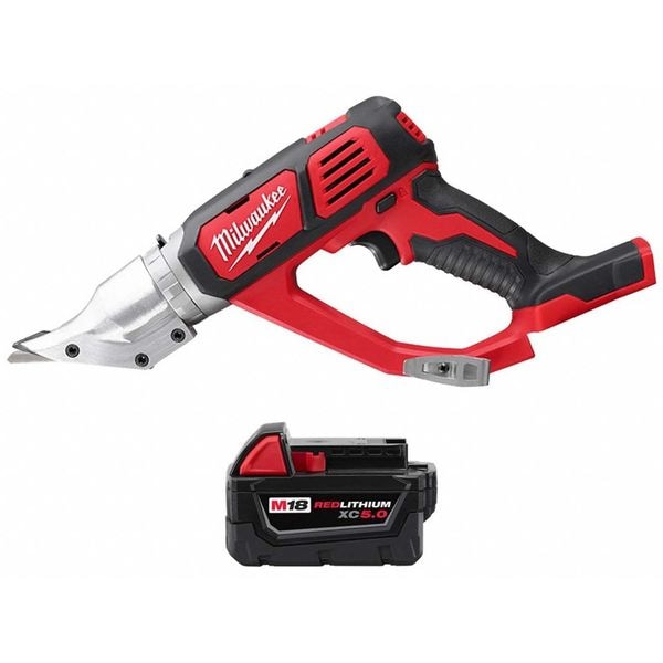 Shear Kit, Primary Material Application Metal; Steel; Stainless Steel, Voltage 18V DC, Shear Style Double Cut, Capacity Stainless Steel 20 ga, Capacity Steel 18 ga, Minimum Cutting Radius 6 in, Brushless Motor No, Cordless Tool Kit Contents (1) Bare Tool; (1) Battery, Battery Capacity (1) 5.0 Ah, Maximum Strokes per Minute 2,500 stroke/min, Minimum Strokes per Minute 0 stroke/min, Battery Series M18(TM) REDLITHIUM(TM), Number of Batteries Included 1