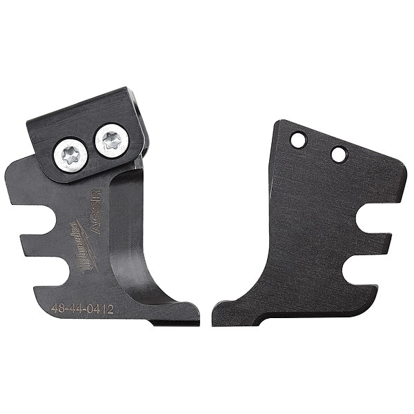 Cutter Blade, Product Type Replacement Blade, Compatible Use With M18 FORCE LOGIC CABLE CUTTER, Cutting Capacities 3/8 in Ground Rod, 3/8 in Non to EHS Guy Wire, 3/8 in Rebar, 477 Hen ACSR, Maximum Compatible Wire/Cable Diameter 477 Hen ACSR; 3/8 in, Compatible Wire/Cable Type Ground Rod, Guy Wire, Rebar, Application Cutting, Compatible Manufacturer Model Number 49-16-2773, Fits Brand Milwaukee M18, Includes M18 477 ACSR Replacement Blades (48-44-0412)