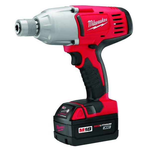 Impact Wrench, Drive Size 7/16 in, Drive Configuration Straight, Max. Torque 350 ft-lb, Battery Included, Voltage 18 V DC, Series M18(TM), Brushless Motor No, Handle Type Pistol Grip, Battery Capacity (2) 2.8 Ah, Tool Length 9 1/2 in, Tool Weight 7 lb, Battery Included (2) 2PYZ8, Battery Pack Replacement 2PYZ8, Features Redlink Plus Intelligence, Includes (2) Batteries, Charger, Kit Box