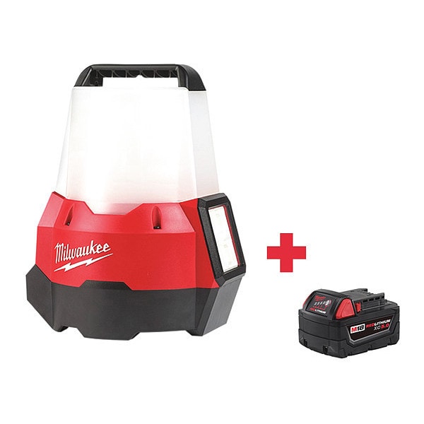 Site Light Kit, Battery Platform M18(TM), Series RADIUS, Light Output Mode High, Low, Medium, Brightness Level 250 lm, 1,000 lm, 2,200 lm, Maximum Brightness Level 2,200 lm, Minimum Brightness Level 250 lm, Mount Type Floor Stand, Hook, Maximum Height 10 3/8 in, Minimum Height 10 3/8 in, Light Distribution 90 Degrees , 360 Degrees , Head Type Fixed, Maximum Head Rotation Angle 0 Degrees , Cordless Tool Kit Contents (1) Bare Tool, (1) Battery, Battery Capacity (1) 5.0 Ah, Run Time 18 hr