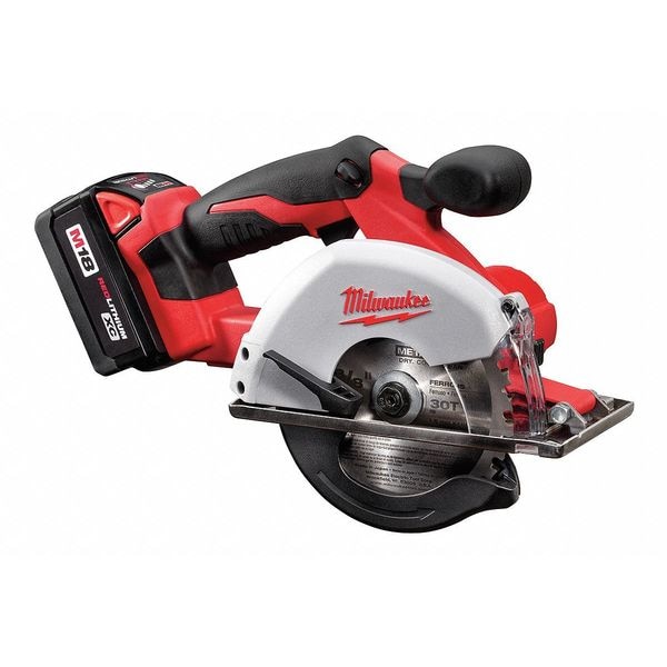 Cordless Circular Saw Kit, Blade Dia. 5 3/8 in, Blade Side Right, Shoe Material Stainless Steel, Tool Length 14 1/4 in, Tool Weight 5.8 lb, Voltage 18.0, Battery Capacity 3.0Ah, Includes (2) Batteries, 1 hr Charger, Carbide Tipped Blade, Contractor Bag, Features Exclusive (4) Pole Frameless Motor Delivers Up to 35 Percent More Cutting Power, Compact, Low Profile Design for Easy Handling and Increased Control, Extra Large Cut Guide, Impact Resistant Window and LED Light, For Cutting Metal