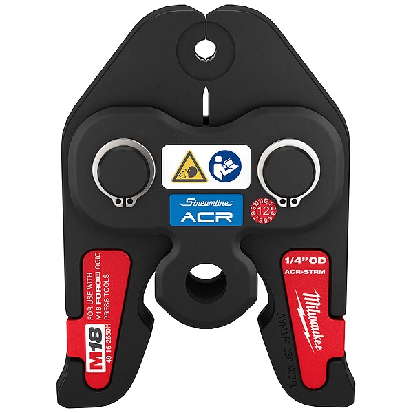 Press Jaw, Product Type Jaw, Compatible Fitting System Streamline ACR, Compatible Material Type Copper (HVAC), Compatible Pipe Size 1/4 in, Kit Pipe or Tubing Sizes Included Not Applicable, Material Steel, Compatible Press Tool Type Extended, Standard, Compatible Tool Grainger Part Number 53AY74, 53AY75, 60GF92, 60GF93, Compatible Tool Manufacturer Part Number 2773-20L, 2922-20, Includes Press Jaw, Manufacturer Warranty Length 2 yr