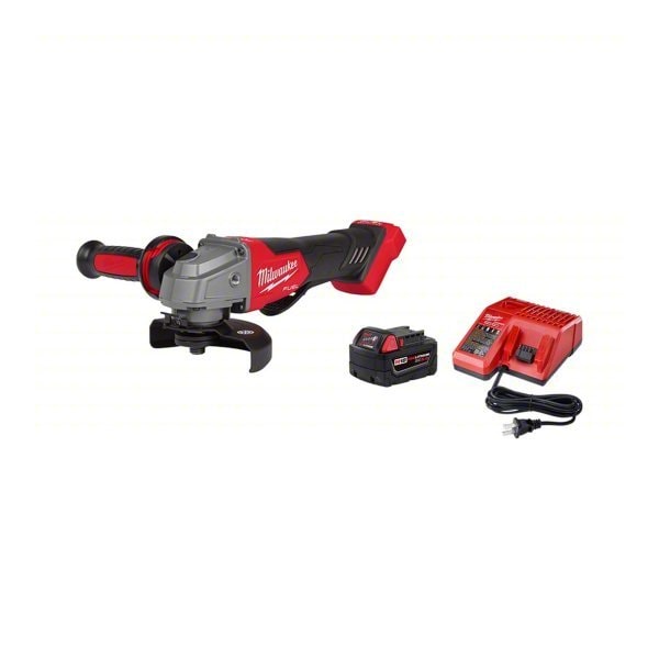 Angle Grinder Kit, Head Type Standard Head, Voltage 18V DC, Wheel Diameter 4 1/2 in, 5 in, For Wheel Type Type 1, Type 27, Brushless Motor Yes, Battery Capacity 5.0 Ah, Safety Features Adjustable Guard, Anti-Vibration Technology, Anti-Kickback Clutch, Overload Protection, Switch Type Paddle, Switch Location Bottom, Number of Speed Settings 1, Accessory Free Tool Change Yes, Spindle Thread Size 5/8 In.-11, Guard Adjustment Toolless Adjustable, Vibration Level 1.5 m/sq sec