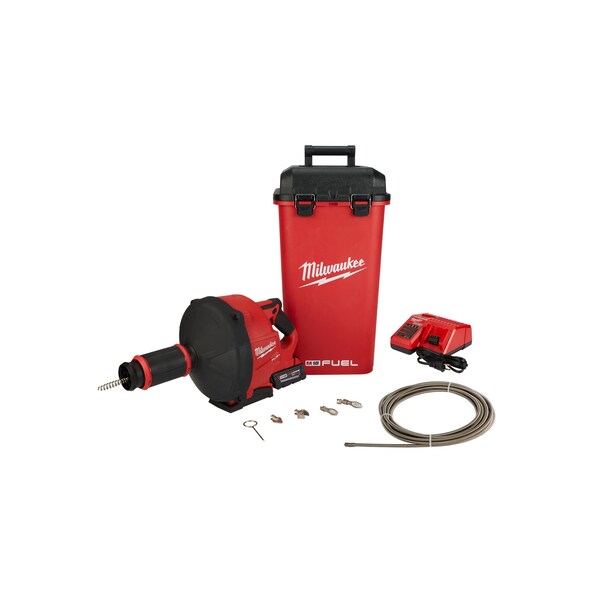 Drain Gun Kit, Machine Type Drain Gun, Battery Platform M18, Maximum Drain Line Inside Diameter 3 in, Minimum Drain Line Inside Diameter 1 1/4 in, Number of Cables Included 2, Cable Diameter Included - Cable A 1/4 in, Cable Length Included - Cable A 35 ft, Cable Diameter Included - Cable B 3/8 in, Cable Length Included - Cable B 35 ft, Number of Augers Included 3, Number of Cutters Included 2, Feed Type Automatic, Cordless Tool Kit Contents Bare Tool, Battery, Charger, Battery Capacity 5 Ah