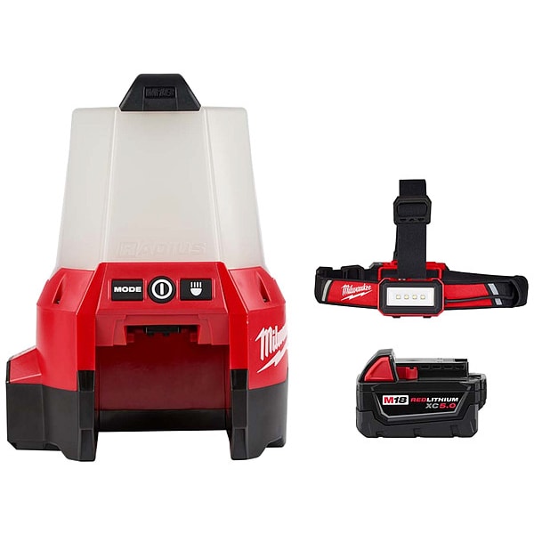 M18 RADIUS Compact Site Light w/ Flood Mode + USB Headlamp + M18 XC5.0 Battery