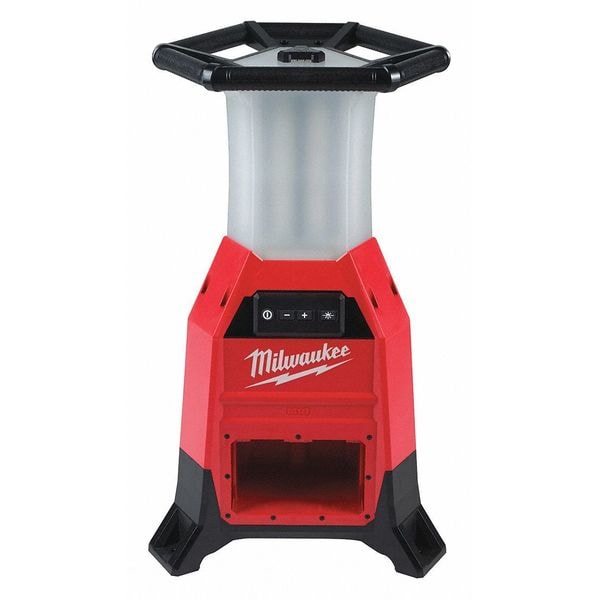 Jobsite Light, Battery Platform M18(TM), Series RADIUS, Light Output Mode High, Low, Medium, Brightness Level 2,500 lm, 4,800 lm, 9,000 lm, Maximum Brightness Level 9,000 lm, Minimum Brightness Level 2,500 lm, Mount Type Floor Stand, Maximum Height 31 5/16 in, Minimum Height 31 5/16 in, Light Distribution 180 Degrees , 360 Degrees , Head Type Fixed, Maximum Head Rotation Angle 0 Degrees , Cordless Tool Kit Contents Bare Tool, Run Time 14 hr, Voltage 18V DC, Battery Included / Bare Tool Bare Tool