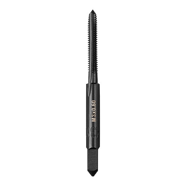 Straight Flute Plug Tap, Thread Size M3 x 0.60 mm, Metric, Plug, Overall Length 2.0000 in, Carbon Steel, Black Oxide, Right Hand, Thread Length 19.05 mm, 75 Percent Thread Drill Size Not Applicable, Thread Limit Not Applicable, Class of Fit 2A