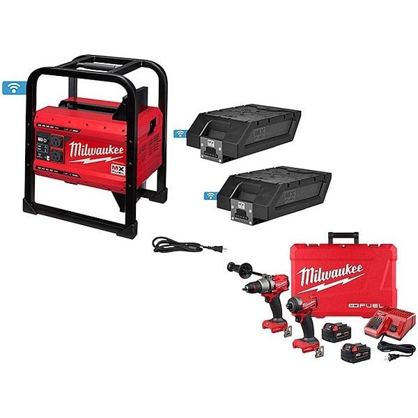 Cordless Combination Kit, Cordless Tools Included Hammer Drill, Impact Driver, Power Supply, Voltage 18 V, 72 V, Power Source Cordless, Number of Tools 3, Battery Capacity (2) 5.0 Ah, (2) 6.0 Ah, Includes (1) Charger (23Y581), (2) Batteries (35GJ99), (2) Battery Pack (MXFXC406), Charging Cord, Tool Brand Milwaukee, Series MX FUEL; M18 FUEL, Battery Included (2) 35GJ99, (2) MXFXC406, Number of Batteries Included 4, Battery Model No. (2) 35GJ99, (2) MXFXC406, Charger 23Y581, Charger Included Yes