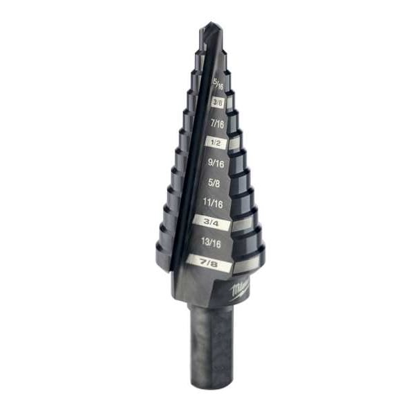Step Drill Bits with JAM-FREE Performance feature a dual-flute design delivering up to 2X faster hole times, up to 4X longer life and up to 50% more holes per battery charge than competitors. Ideal for drilling small and large-diameter holes in steel and plastic, these bits are Optimized for Cordless Drills in High Speed. The Rapid Strike tip allows for a fast and accurate start that generates less heat, resulting in longer bittip life. Black oxide coating also enhances durability, hole quality and bit life. For user convenience and accuracy, each bit has laser-engraved reference marks you can see while drilling. The 3-flat Secure-Grip shank ensures a solid connection with the drill chuck. The #3 Step Drill Bit has 9 hole sizes in 1/16" increments ranging from 1/4" - 3/4". Jam-Free Performance in high speed with most professional 18 volt cordless drills with lithium-ion battery technology.
