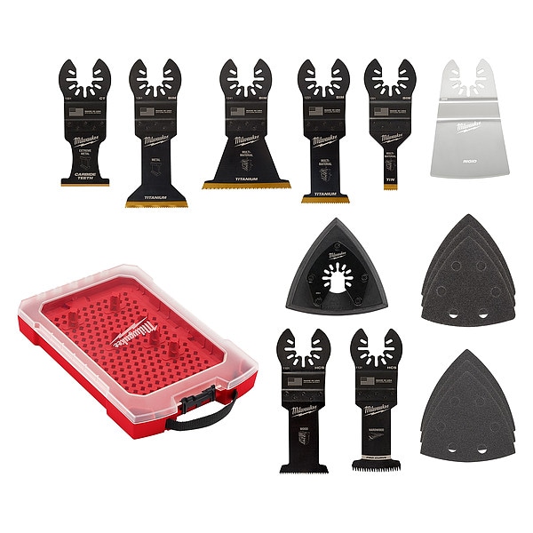 Oscillating Tool Blade Set, Blade Type Scraping, Connection Style Universal Open-Back, Blade Shape Straight, Blade Material Bi-Metal, Metal, Stainless Steel, Blade Diameter Not Applicable, Blade Width 3/8 in, 1 3/8 in, 1 3/4 in, 2 1/2 in, Overall Length 2 5/8 in, 3 9/16 in, 3 11/16 in, 4 1/16 in, Primary Material Application Cement Board, Drywall, Fiber Cement, Metal and Wood, Nail Embedded Wood, Non Ferrous Metal, Plaster, Plastic, Plywood, PVC, Materials Cut Wood, Cut Style Flush Cut