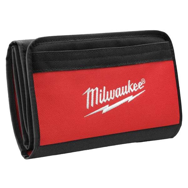 Carrying Case, Material Nylon, For Use With All Milwaukee Test and Measurement Accessories can Fit in the Pockets, Color Black/Red, Features Four Inside Clear Pockets, Secure Velcro (TM) Closure, Strong Nylon Strap, Includes (5) Pouch, Roll Up, Overall Height 22 in, Overall Width 8 in, Overall Depth 4 1/2 in, Wrist Strap No, Belt Loop Included No, Weather-Resistant Zipper No
