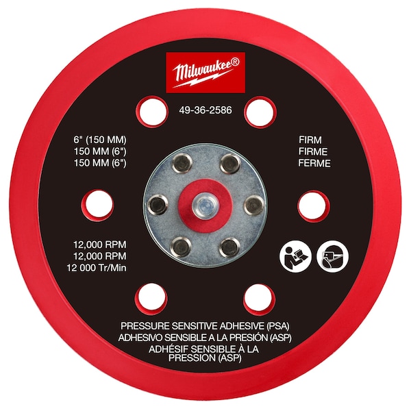 Sander Backing Pad, Abrasive Mount Type PSA, Abrasive Mounting Quick Change System Not Applicable, Connector Size Not Applicable, Backup Pad Shape Round, Device Material Polyurethane, Density Hard, Maximum Operating Speed 12,000 RPM, Number of Vacuum Holes 6, Color Black, Red, Overall Length Not Applicable, Overall Width Not Applicable, Overall Diameter 6 in, Overall Thickness 1 in, Product Type Disc Backup Pad, Compatible with Manufacturer Model Number 2585-20