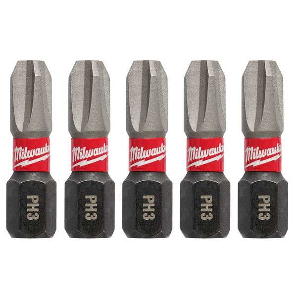 Insert Bit, Application - Tools Impact, Bit Style Phillips, Fastening Tool Tip Size #3, Shank Style Hex, Hex Shank Size 1/4 in, Single End, Fastening Tool Material S2 Steel, Overall Bit Length 1 in, SAE, Finish Black Phosphate, Impact Rated Impact Rated, Insert Bit, Package Quantity 5