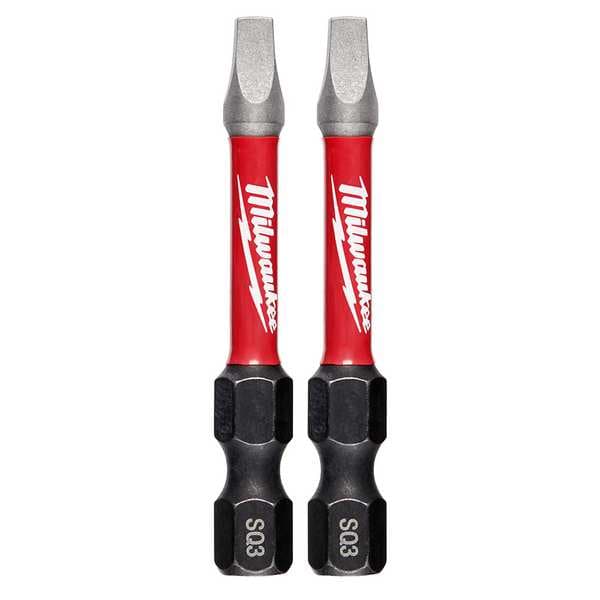 Power Bit, Application - Tools Impact, Bit Style Square Recess, Fastening Tool Tip Size #3, Shank Style Hex, Hex Shank Size 1/4 in, Single End, Fastening Tool Material S2 Steel, Overall Bit Length 2 in, SAE, Finish Black Phosphate, Impact Rated Impact Rated, Power Bit, Package Quantity 2