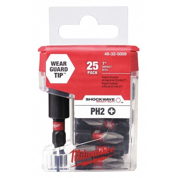 Milwaukee SHOCKWAVE Impact Duty Driver Bits and Bit Holders are engineered for extreme durability and up to 10x life. Made from proprietary steel and heat treated to control hardness, the Shockwave Impact Duty Driver Bits feature an innovatively designed geometric shock absorption zone to extend life. The forged tip allows for a secure grip and maximum contact eliminating stripping or slipping. BONUS Milwaukee SHOCKWAVE Magnetic Bit Tip Holder 2.36" included. The SHOCKWAVE Impact Duty Magnetic Bit Holders are made from proprietary steel and heat treated to control hardness and feature a powerful magnet allowing for a secure grip and unyielding bit engagement. The 2-piece construction of the holders is the optimal assembly for abusive applications. Now use with Milwaukee SHOCKWAVE Impact Duty Insert Magnetic Nut Drivers (1/4", 5/16", 3/8", 7/16", 1/2").