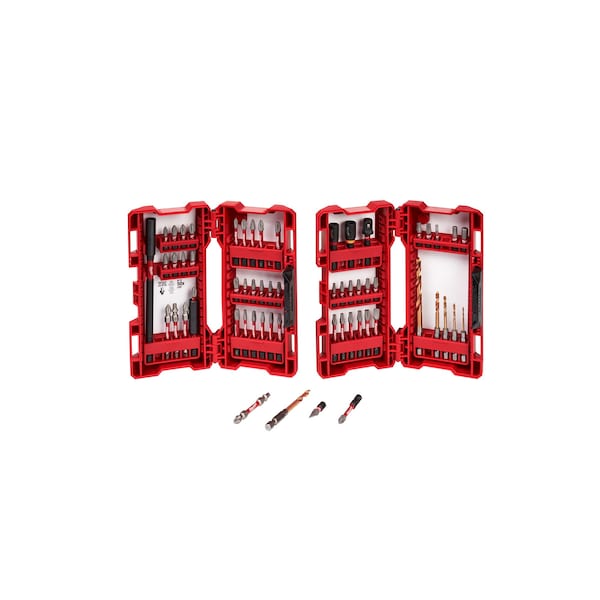 Compact Bit Holder, 6 in Bit Holder, Magnetic Nut Drivers 1/4 in, 5/16 in, Socket Adapter 3/8 in, Hex Drill Bits 1/16 in, 3/32 in, 1/8 in, 5/32 in, 3/16 in, 1/4 in, Double Ended Power Bits PH2/SQ2, PH2/T25, PH2/SL#10, T20/T25, Insert Driver Bits PH1, (6) PH2, PR2, (2) PH3, SQ1, (3) SQ2, SQ3, T10, T15, (2) T20, (3) T25, T30, SL#6, SL#10, Hex 3/16 in, Hex 1/4 in, 2 in Power Bits PH1, (4) PH2, (2) PH3, SQ1, (3) SQ2, SQ3, (2) T20, (2) T25, T30, SL#10