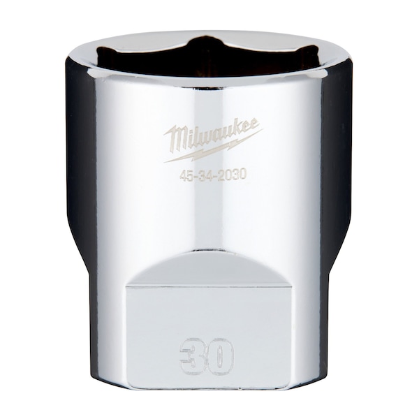 The MILWAUKEE® 1/2" Drive 30MM Metric 6-Point Standard Socket with FOUR FLATTM Sides was designed from the ground up to be part of the most versatile socket family. The 1/2" drive sockets feature an innovative design with four parallel flat sides, which deter rolling and are wrench-compatible. The metric socket sizes are stamped into the flats providing improved, easy-to-read visibility. This standard socket has been optimized geometry to reduce bolt rounding and stripping. Milwaukee backs their 1/2" Drive Metric Sockets with a lifetime guarantee.