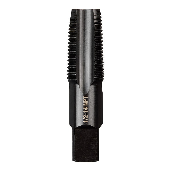 Straight Flute Taper Tap, Thread Size 1/2 In.-14, NPT, Taper, Overall Length 3 1/4 in, Carbon Steel, Black Oxide, Right Hand, Thread Length 1.5 in, 75 Percent Thread Drill Size Not Applicable, Thread Limit Not Applicable, Class of Fit 2A