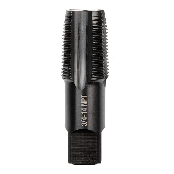 Straight Flute Taper Tap, Thread Size 3/4 In.-14, NPT, Taper, Overall Length 3 1/2 in, Carbon Steel, Black Oxide, Right Hand, Thread Length 1.5 in, 75 Percent Thread Drill Size Not Applicable, Thread Limit Not Applicable, Class of Fit 2A
