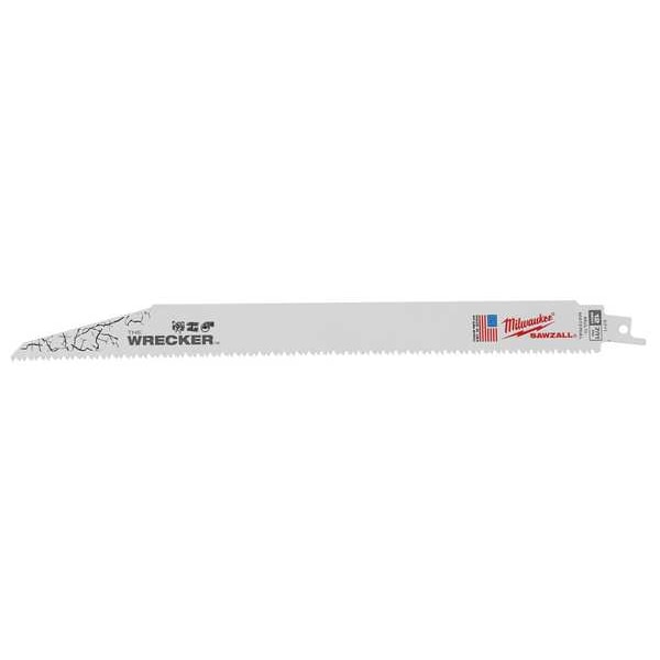 Reciprocating Saw Blade, Primary Material Application Demolition, Materials Cut Aluminum, Copper, Non-Ferrous Metals, Plastic, Blade Length 12 in, Teeth per Inch 7/11, Cut Width 0.062 in, Blade Material High Speed Steel, Tip Material High Speed Steel, Back Style Straight, Number of Cutting Edges 1, Cutting Edge Style Rigid for Straight Cuts, For Use With Saw Type Reciprocating Saws, Package Quantity 5