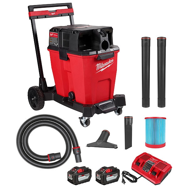 Cordless Wet and Dry Vacuum Kit, Vacuum Power Source Cordless, Filter Efficiency Not Applicable, Vacuum Filtration Type Standard, Vacuum Pickup Type Wet/Dry, Vacuum Air Flow 114 cfm, Static Pressure 77 in, Sound Level Not Applicable, Tank Material Plastic, Tank Size 12 gal, Tank Dry Capacity 12 gal, Tank Wet Capacity 12 gal, Vacuum Collection Type Bagless, Motor Efficiency Type Brushless, Number of Motor Stages 1, Peak Horsepower 4 3/10 hp, Current Not Applicable, Frequency Not Applicable