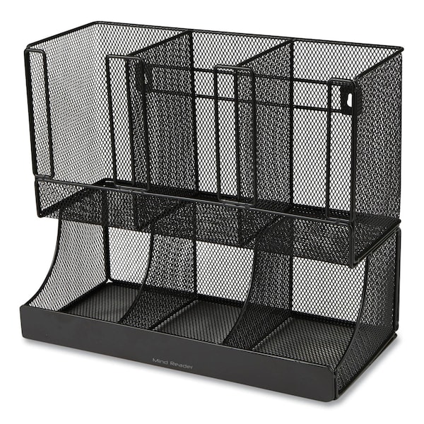 Network Collection 2-Tier 6-Compartment Coffee Cup and Condiment Countertop Organizer, Black