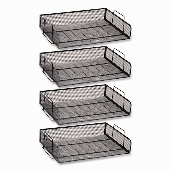 Stackable Paper Desk Tray Organizer, Letter Size, 9.75 x 14 x 3.25, Black, 4PK