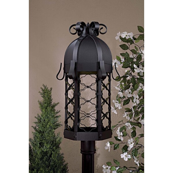 This One Light Post Light has a Black Finish and is part of the Montalbo Collection. It is Dark Sky Compliant and Energy Star Compliant.
