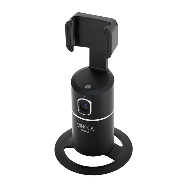 Free your hands while recording or video chatting using the Minolta 360° Intelligent Face Tracker for Smartphones in Black. Using an intelligent AI camera to track your face, it follows your movement to keep you centered in the shot, and is compatible with all smartphones 2.5 in. to 4.3 in. in width. With a 360° horizontal rotation, you will always be kept in the shot. It has a 42° per second rotation speed, 6 ft. to 10 ft. tracking distance, and a 105° tracking angle of view. The expandable smartphone mount keeps your phone secure. The built-in tripod mount allows the tracker to be placed in locations other than on a table or desk. The high-capacity built-in rechargeable Li-Ion battery gives you the freedom to take the tracker on the go. It also comes with a removable pedestal, USB-C cable, user manual.