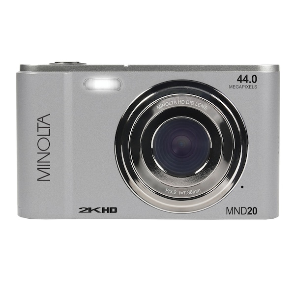 Preserve the moment with Minolta's Silver MND20 Digital Camera and its high-resolution photos that are suitable for cropping or enlarging thanks to the 44 MP photo resolution. And its 2.7K Quad HD video gives your video greater vividness and clarity than standard-definition video. Featuring a compact size with anti-shake stabilization' you can easily compose shots and review photos with the 2.9-in. LCD monitor. Capture close-up details or shoot from a distance with the 16x digital zoom lens. Intelligent scene modes and features like smile capture and photo burst make shooting the ideal shot easy and fun.