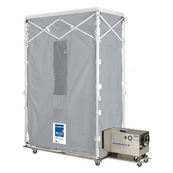 Dust Containment Unit, ICRA Compliance, Number of Doors 4, Door Height (2) 75 in, (2) 83 1/2 in, Door Width (2) 22 in, (2) 48 in, Window Material Clear Plastic, Number of Windows 2, Window Height 36 1/2 in, Window Width 11 in, Negative Air Port Dia. 12-1/2 in, Vacuum Port Dia. 3 1/2 in, Expanded Width 34 in, Height 10 ft 6 in, Collapsed Height 66 in, Collapsed Length 14 in, Collapsed Width 14 in, Double reinforced Polypropylene Floor, Frame Material Powder Coated Steel