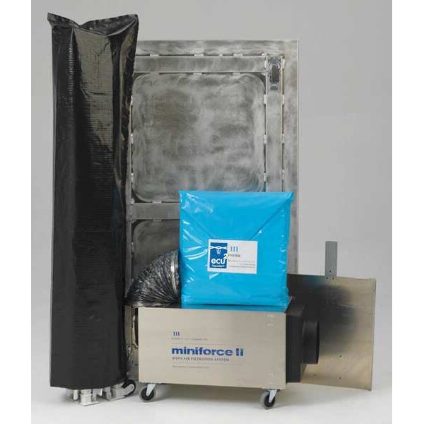 MiniForce 2 Negative Air Machine, ECU2 Frame, 3 Disposable Envelopes, Manual, Document Holder, Mobile Platform2, Mobile Platform Tow Cart, Hook and Loop Fastener Pieces, Cover Bag